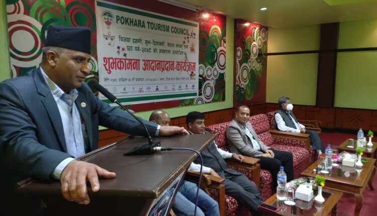 पोखरा पर्यटन परिषदले आइतबार पोखरामा आयोजना गरेको नेपालीहरुको महान पर्व बिजयादशमी, शुभ—दिपावली, नेपाल सम्वत, छट लगायतको अवसरमा आयोजित शुभकामना आदान प्रदान कार्यक्रममा सम्बोधन गर्दै मन्त्री बराल उक्त कुरा बताउनु भएको हो ।