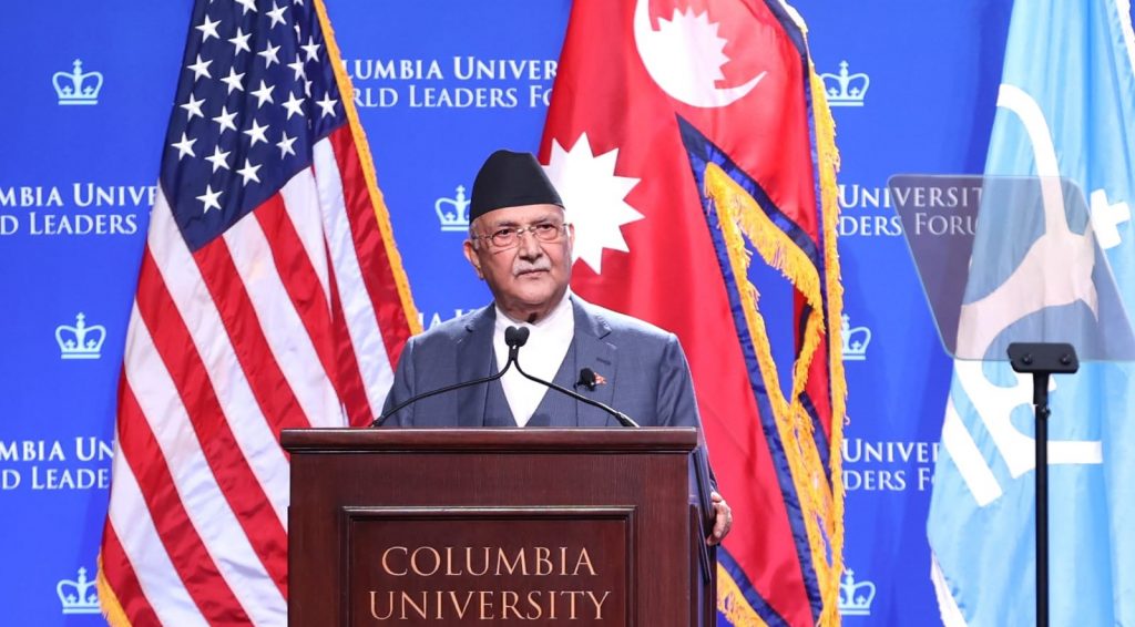प्रधानमन्त्री केपी शर्मा ओलीले विदेशमा रहेका नेपाली युवालाई रोजगारी विकासका लागि स्वदेशमा फर्केर अवसर सृजना गर्न आग्रह गरेका छन् । संयुक्त राष्ट्रसङ्घको ७९औँ महासभामा भाग लिन नेपाली प्रतिनिधिमण्डलको नेतृत्व गर्दै संयुक्त राज्य अमेरिकाको न्युयोर्कमा रहेका प्रधानमन्त्री ओलीले सोमबार कोलम्बिया विश्वविद्यालयद्वारा आयोजित वल्ड लिडर्स फोरममा गरिबी निवारण गरी सबैलाई सम्मानजनक रूपमा बाँच्न पाउने अधिकार दिलाउन समृद्ध नेपाल सुखी नेपालीको राष्ट्रिय आकाङ्क्षा अघि सारिएको स्पष्ट पारे ।