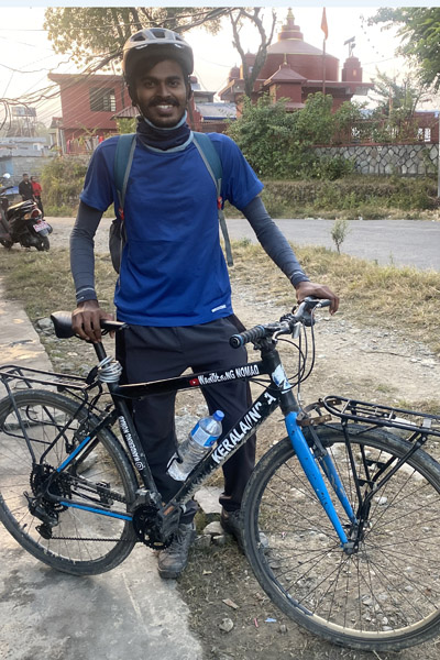 आफ्नो कामाईबाट बचत गरेको दश हजार भारु लिएर नेपालको लागि साईकल यात्रामा निस्केका उनी आफुले खाने सुत्ने सवै सरसामान आफु संग नै साईकलमा लिएर हिडेको बताउछन ।