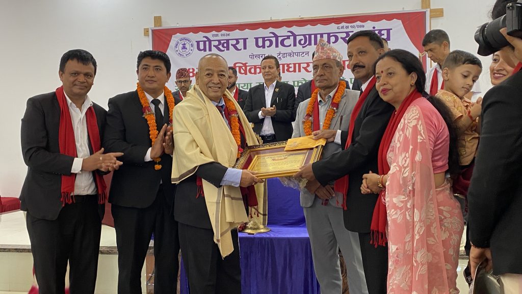 कार्यक्रमका प्रमुख अतिथि गण्डकी प्रदेशका पर्यटन तथा उद्योग मन्त्री माननिय मित्रलाल बस्यालले फोटोग्राफी क्षेत्रका धरोहर ब्यक्तित्वलाई सम्मान गर्ने परिपाटीको खुलेर प्रशंशा गर्नुभयो फोटोग्राफीका माध्यम वाट देशमा पर्यटनको प्रचुर सम्भावना रहेकोले सबै फोटोग्राफरहरुलाई यस पेशाप्रति खुलेर लाग्न आग्रह गर्र्नुभयो ।