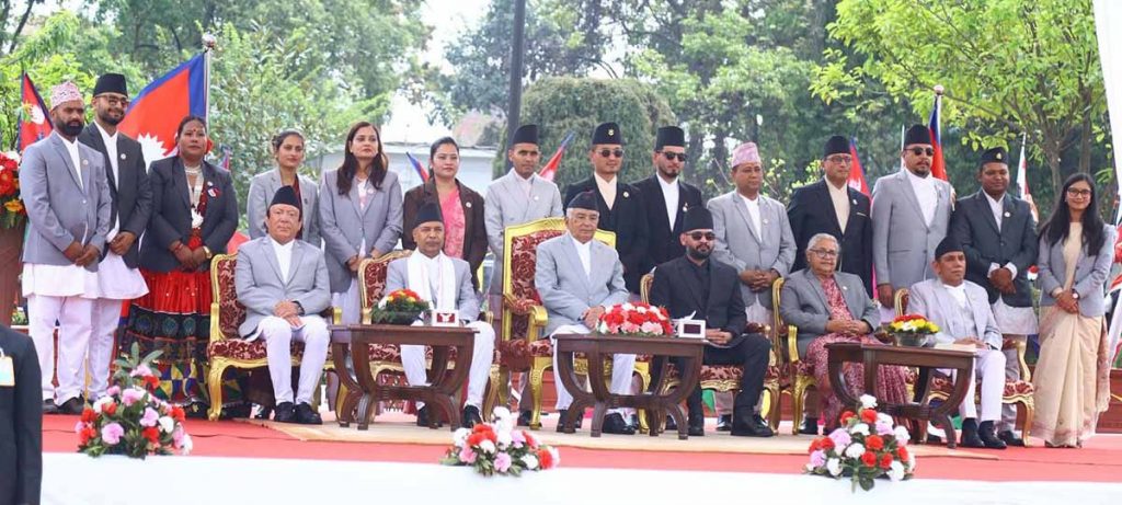 काठमाडौँ, प्रधानमन्त्रीका रूपमा बालेन्द्र शाहले पद तथा गोपनीयताको शपथ लिएलगत्तै १५ जना नवनियुक्त मन्त्रीहरुले पद तथा गोपनीयताको शपथ लिएका छन। राष्ट्रपति कार्यालय शीतल निवासमा आयोजित विशेष कार्यक्रममा राष्ट्रपति रामचन्द्र पौडेलसमक्ष नवनियुक्त १५ जना मन्त्रीले शपथ लिएका हुन ।